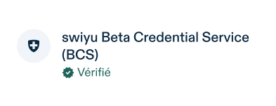 La personne ou l’organisation est enregistrée dans l’infrastructure de confiance swiyu, mais n’a pas (encore) été authentifiée par la Confédération.