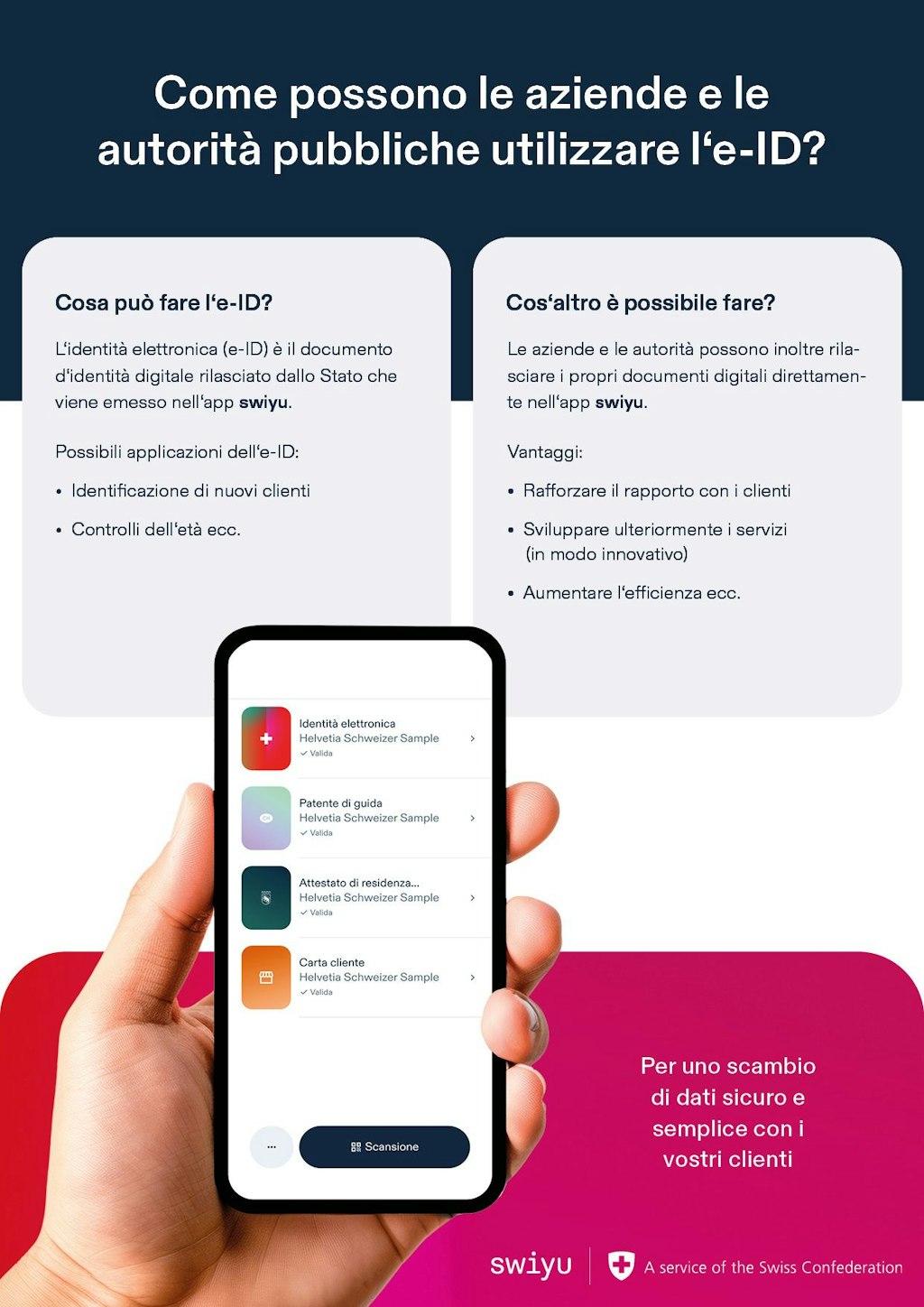 I contenuti multimediali disponibili su questo sito web possono essere utilizzati liberamente, purché sia citata la fonte eid.admin.ch.